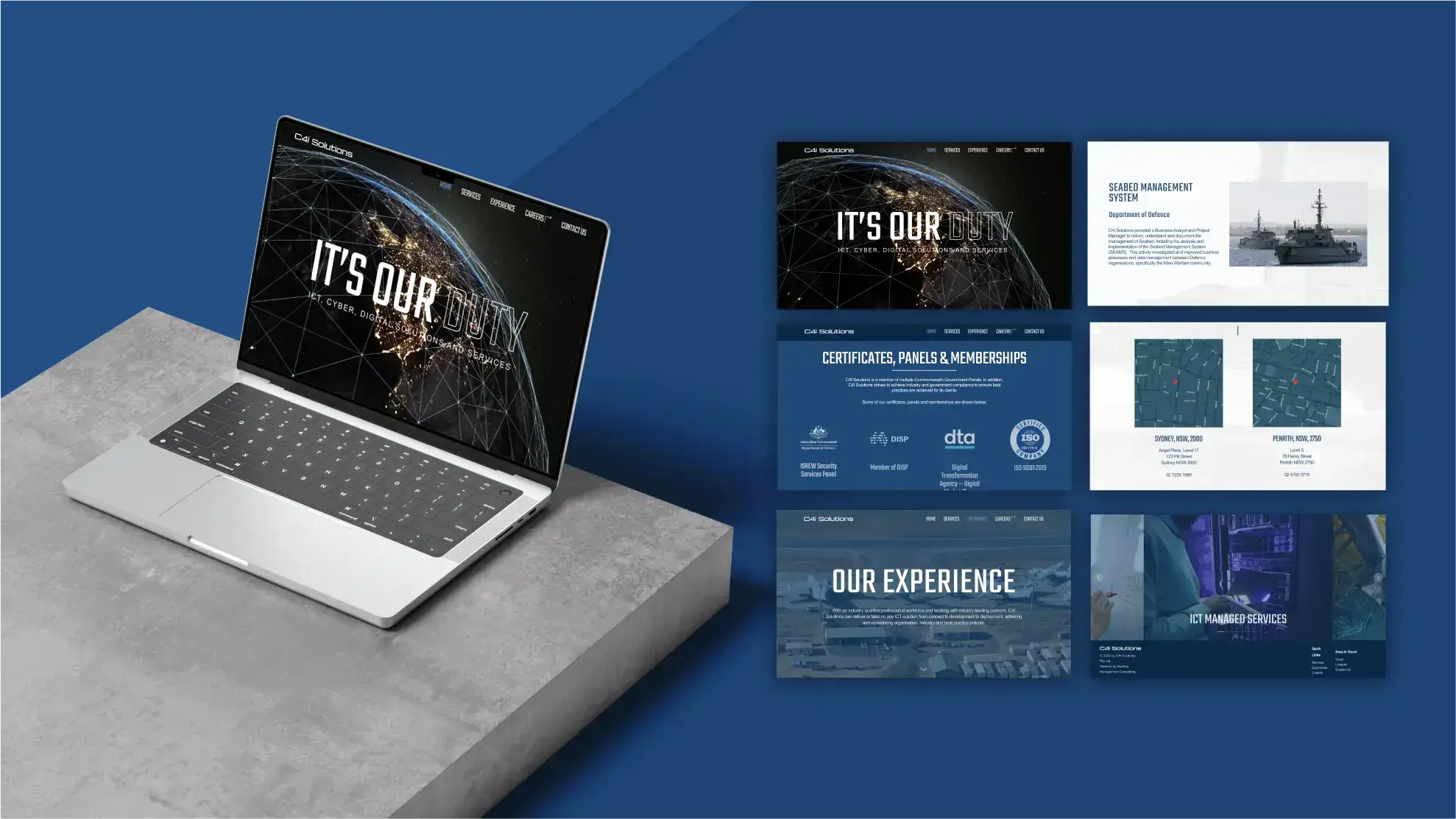 Our comprehensive rebranding efforts for C4i Solutions included developing a new, cohesive brand identity. This involved designing a modern, user-friendly website that embodies the professionalism and precision characteristic of the navy. We provided copywriting services that communicated their expertise and commitment, ensuring the tone mirrored the discipline and integrity of their team. In addition, we executed a strategic LinkedIn marketing campaign to enhance their online presence and engage with their target audience effectively. Our work also extended to designing impactful signage that reinforced their brand at every touchpoint.