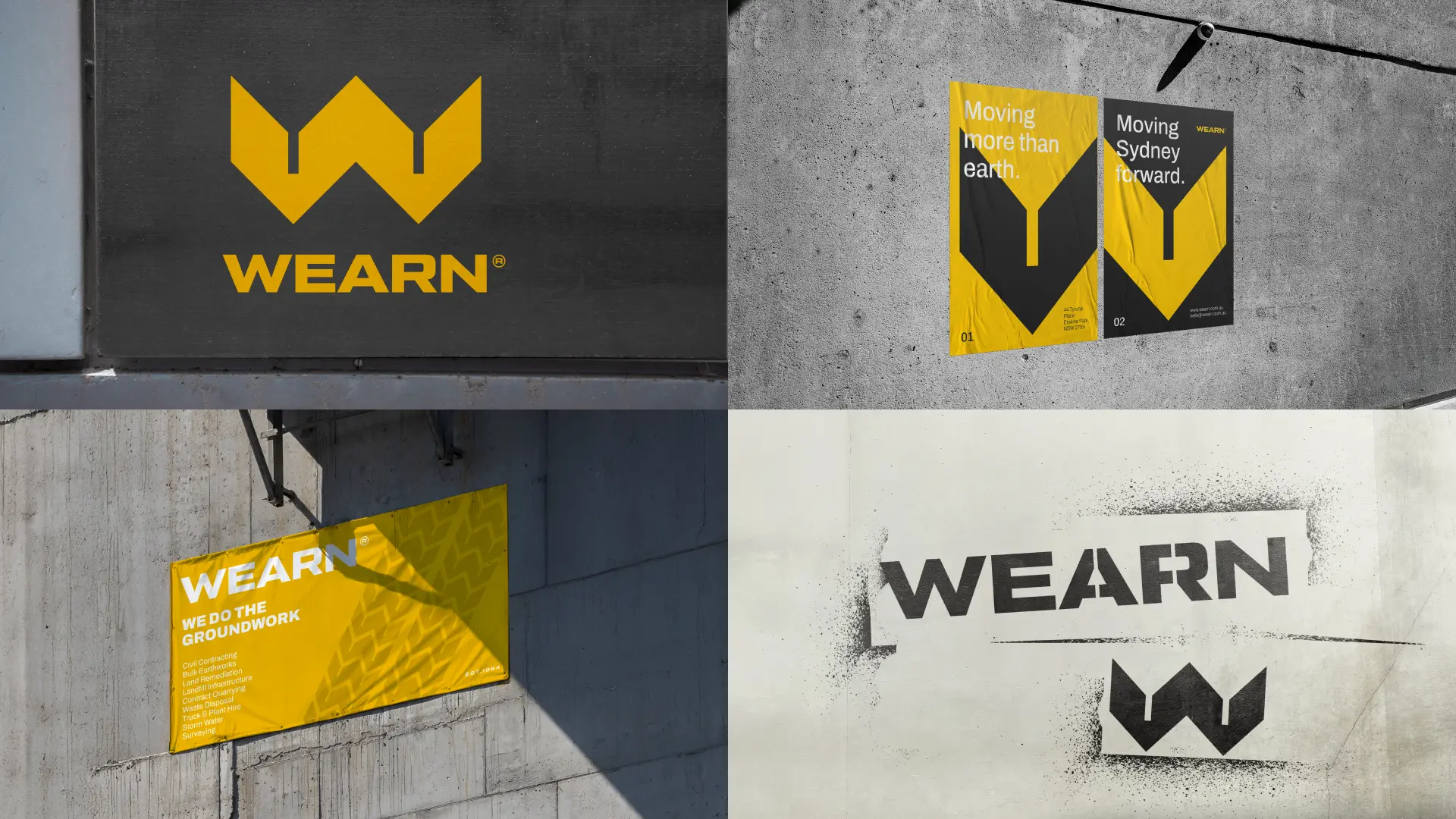 Formerly known as Mulgoa Quarries, the business had earned a strong reputation and delivered exceptional work for decades. But as the company evolved, the name no longer told the full story. There had not been a quarry in Mulgoa for more than 25 years. In its place stood a business delivering major civil and infrastructure projects with the capability, experience and scale to match. Yet the market had not fully caught up. Wearn was created to close that gap. A name and identity designed to better reflect the business as it stands today, and where it is headed next.